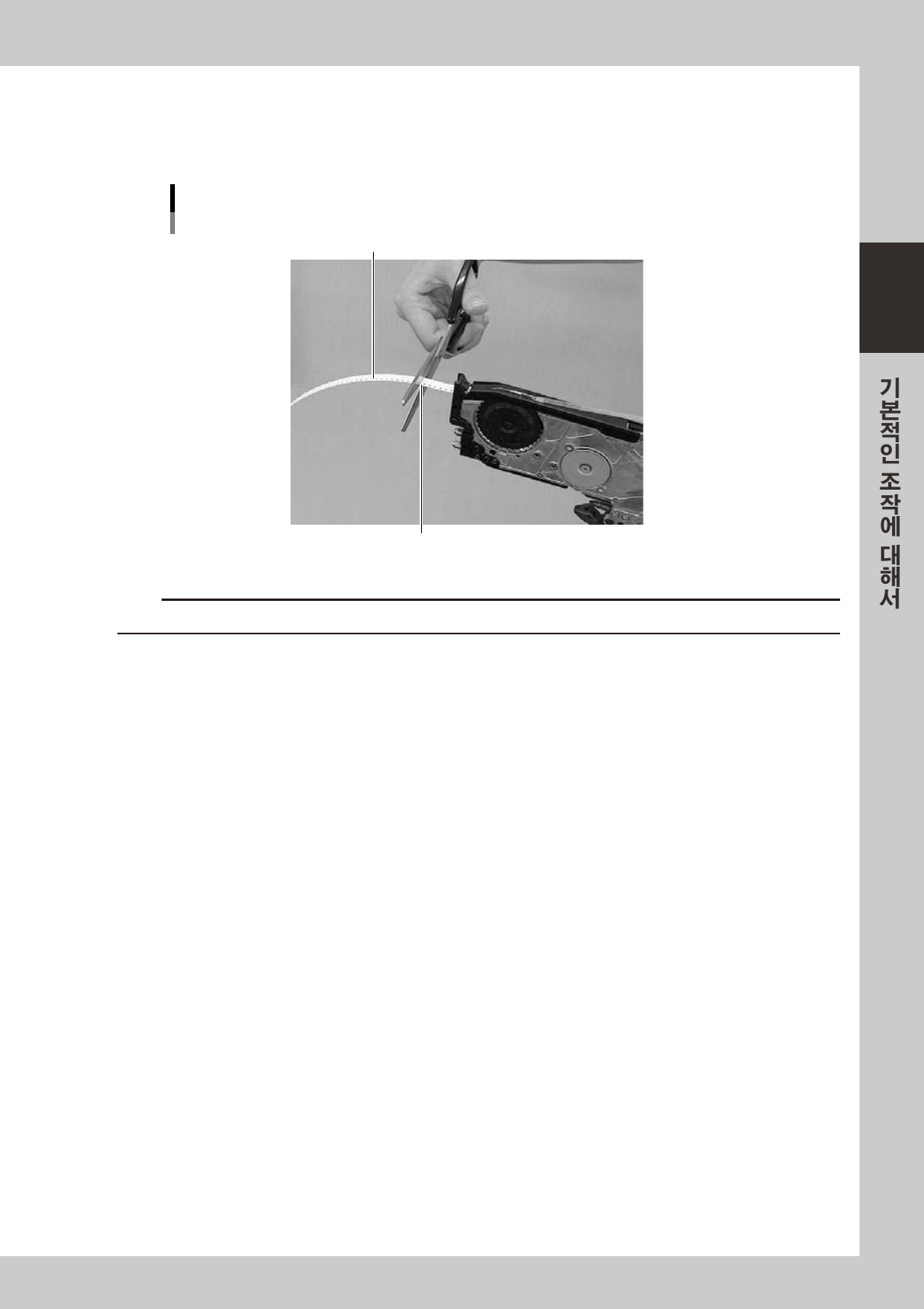 2-33 2 q 캐리어 테이프를 자 릅니다 . 부품을흡착위 치 까 지보 내 면 ,장비에세 팅 하 기전 에테 이 프피 더 의선 단으로 부터나와 있 는캐 리 어테 이 프 를1 ~ 2 ㎝정 도잘라주십 시 오 . 캐리어 테이프의 컷트 캐리어 테이프 이곳을 2㎝정도 자른다 27 213 - L 4 - 00 c 주의 캐 리 어테 이 프 를자르지않 고사용하면 ,캐리 어…