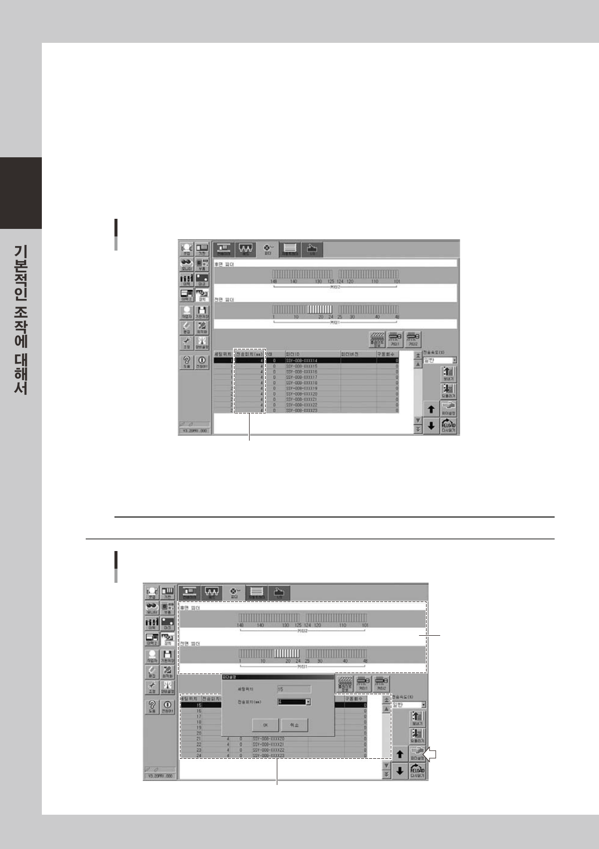 다음 내용은 , 장비 설정내의 피더피치 지정을「피더셋업」으로 설정한 경우의 설명입니다 .