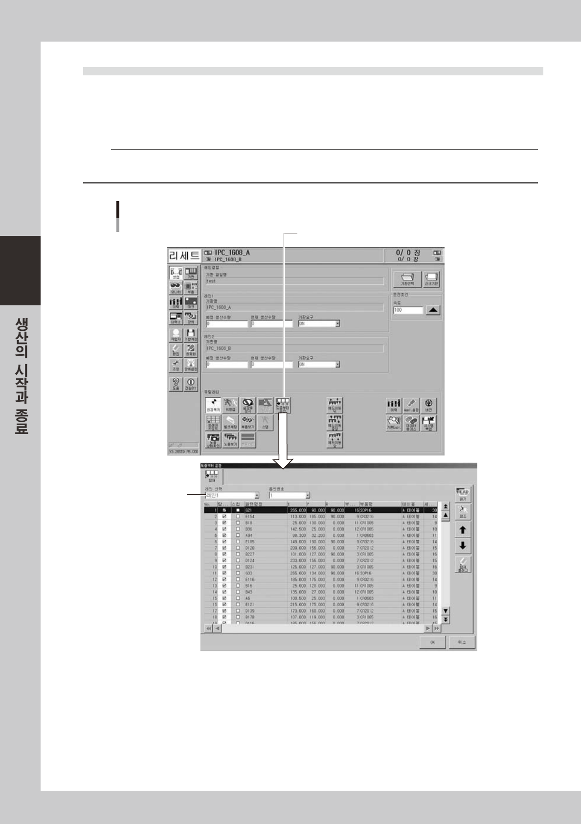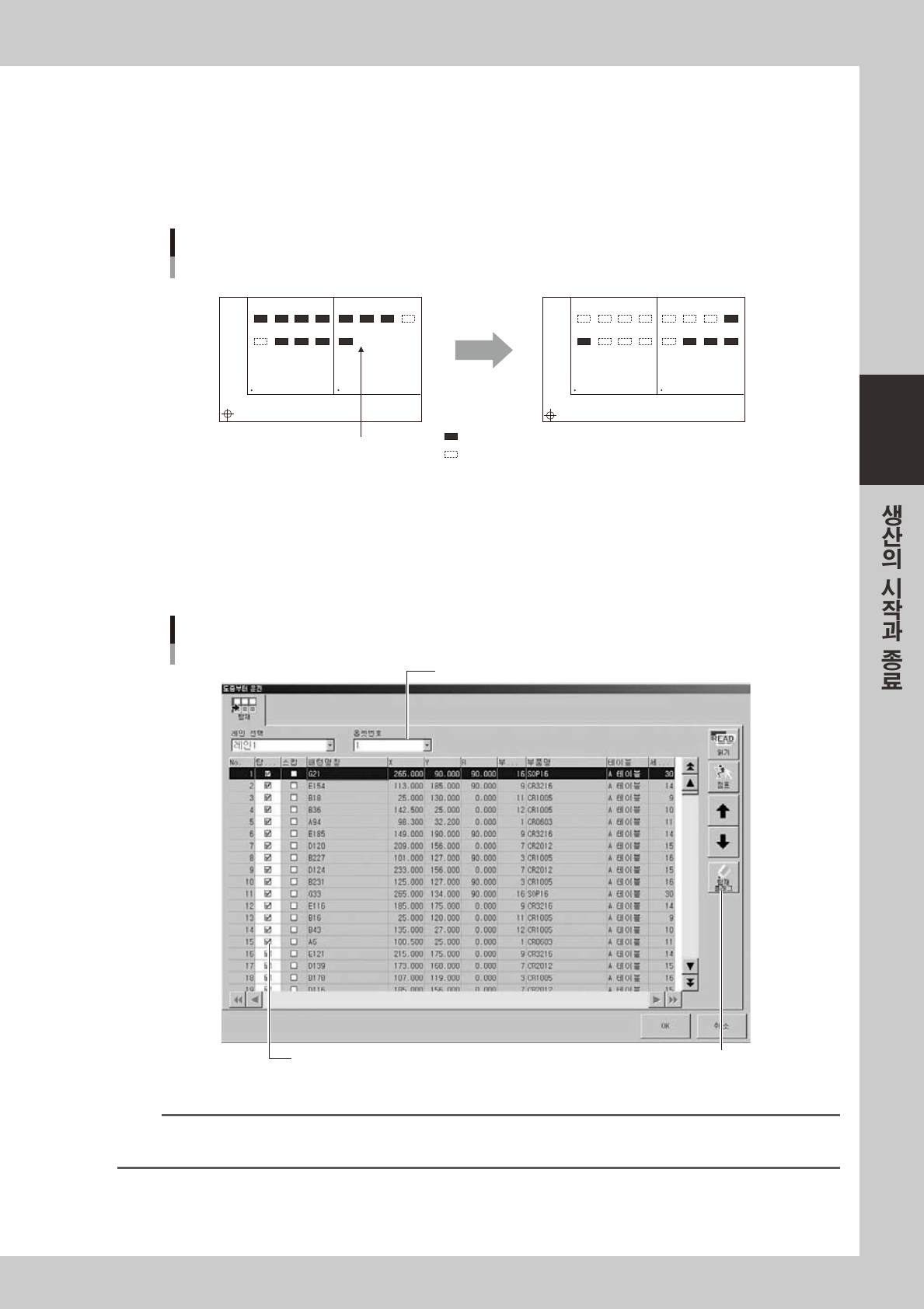 우 , [ 읽기 ] 버튼을 누르고 데이터를 읽은 후 [ 탑재 플래그 ] 버튼으로 각 탑재포인트의 「탑재완료」수정을