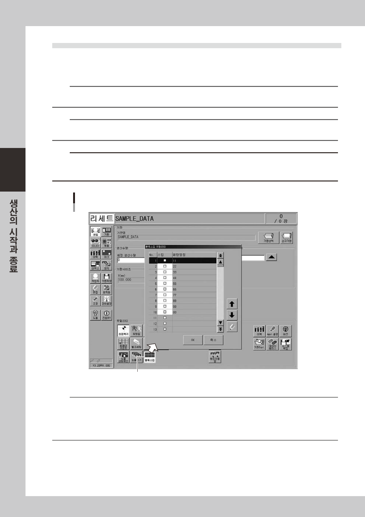 듀얼 레인에서 양측 레인을 사용해서 생산을 실행할 경우는 , 레인 전환버튼으로 조작할 레인을 전환시켜서 조정과 확인을 해
