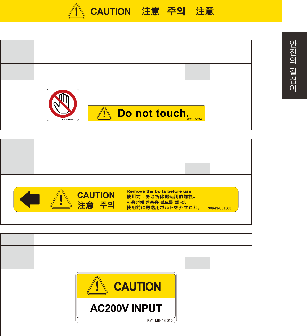 위험의 회피 사용전에는 반송용 볼트를 뺄 것 .