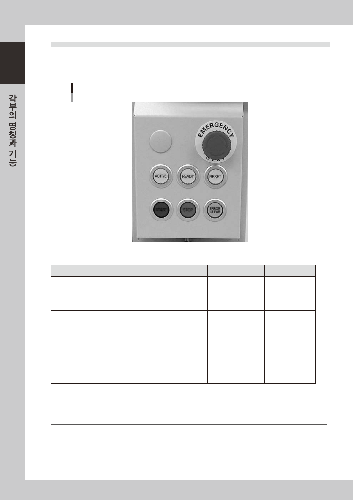 [ERROR CLEAR] 및 [RESET] 버튼은 같은 패널의 [ACTIVE] 버튼이 ON 으로 되어 있을때만 유효합니다 .