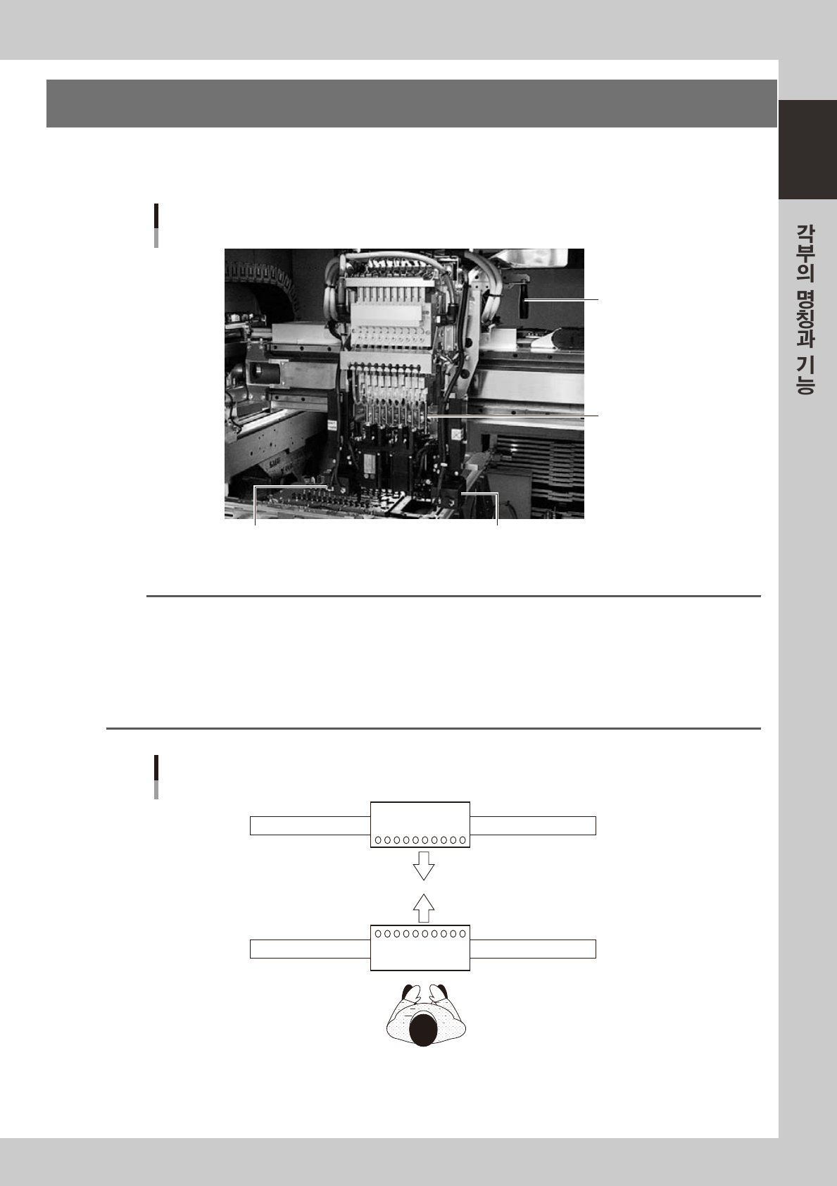 1-5 1 3. 헤드부 헤 드 부는장 비 의A,B2 개 의X Y 축상 에탑재 되 어있 으며부 품 의흡착 이 나실 장을합니 다 .아래에헤 드 부의구 성 이 나노 즐종류에대해설 명 합니 다 . 헤드부 피듀셜 카메라 조명 유니트 피듀셜 카메라 조명 유니트 10연 멀티헤드 헤드 이동용 핸들(뒤쪽) 27 1 04-L4-00 n 요점 피듀 셜 카메라의 조명 유니 트 의 …