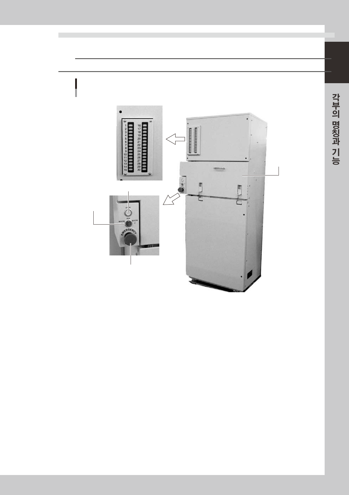 이도어를열어서 ,팔레트또는매거진을교환합니다 .매거진은상하로두개를 ( 매거진 1,매거진 2) 수납할수있습니다 .
