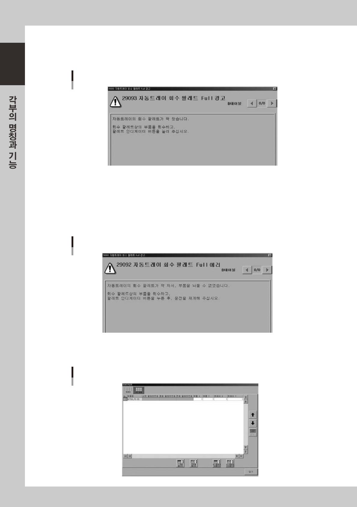 모든회수팔레트가꽉차서 ,회수팔레트에부품을폐기할수없을경우는하기의에러가발생합니다 .장비는정지하므