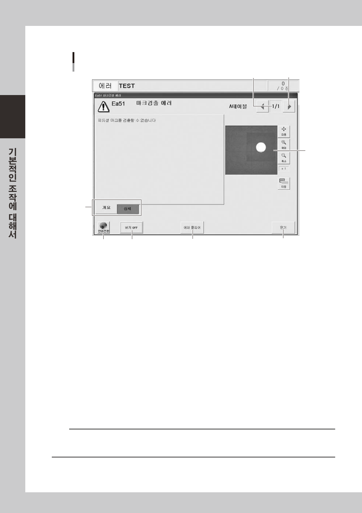 현재표시중인에러와에러총수량을표시합니다 .복수의에러가발생한경우는 ,좌우의[ 에러전환 ] 버튼을눌러서에러