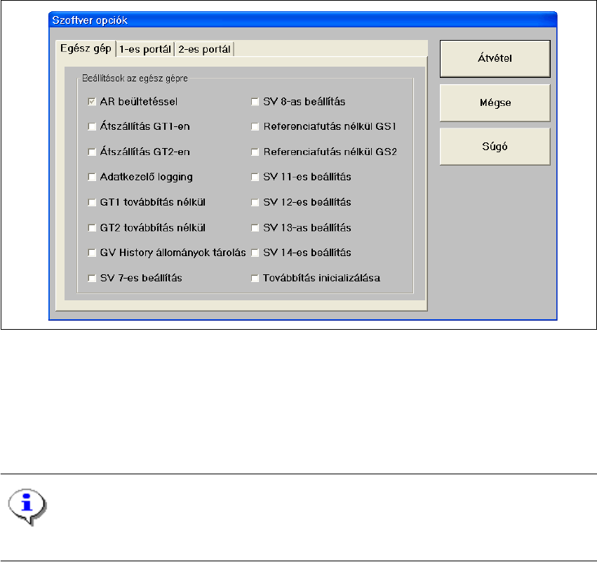 Ábr. 3.3 - 12 "Szoftver opciók" párbeszéd (példa: HF)