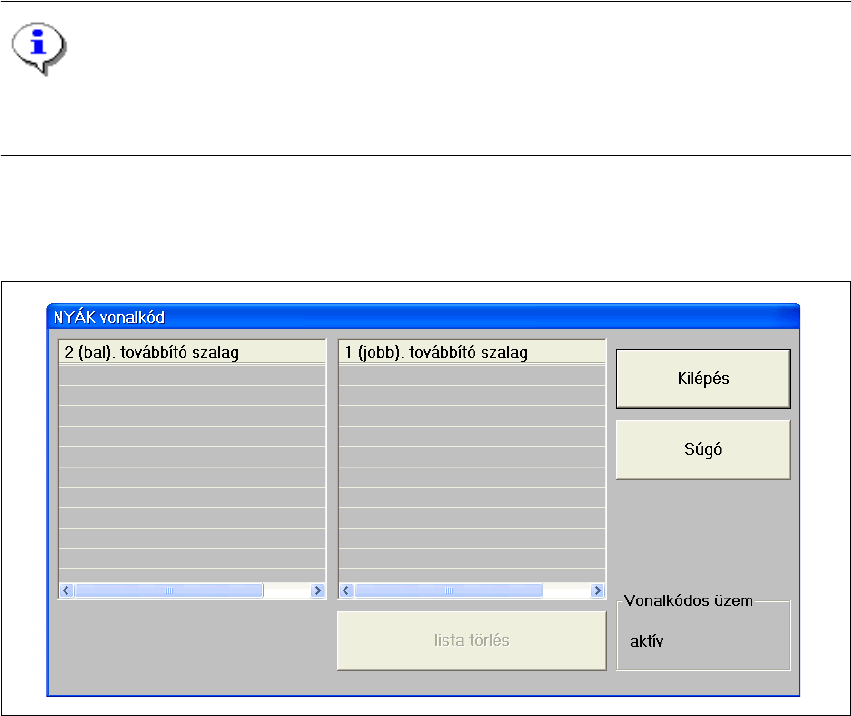 Ábr. 3.3 - 13 "NYÁK vonalkód" párbeszéd (Példa: csak egy továbbító szalag)