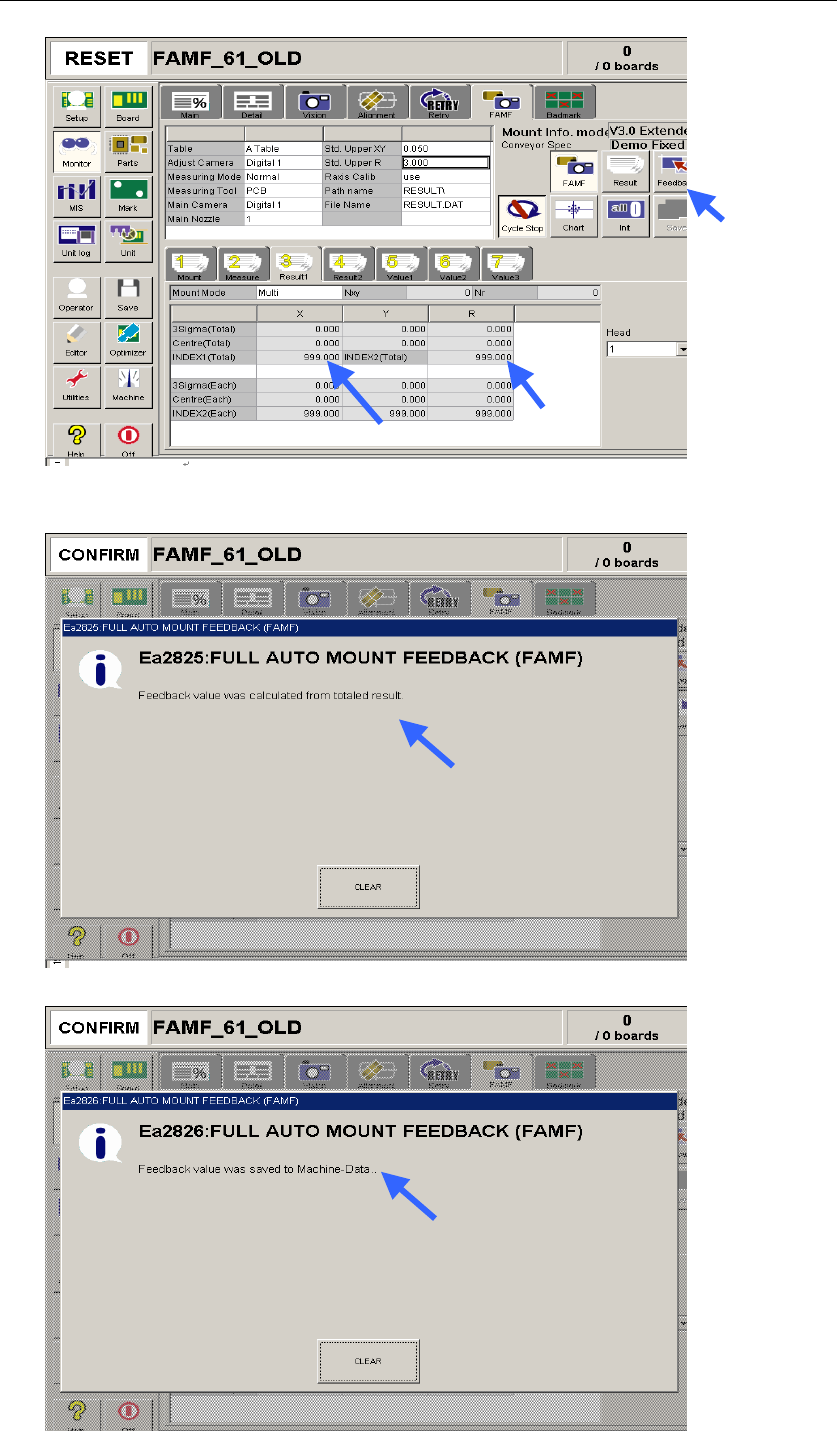 关闭画面,再一次进行贴装反馈,直到“INDEX1”及“INDEX2”数值如果≥1.000,这