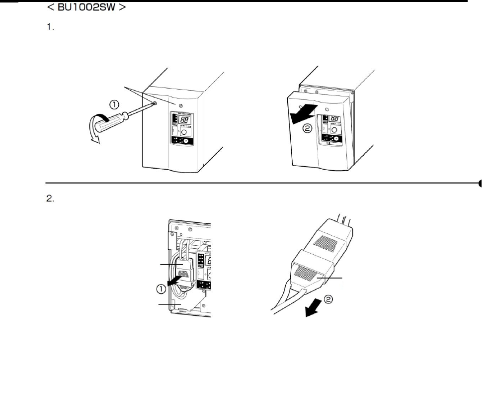 用螺丝刀逆时针拧松前面板上方的 2 处螺丝直至空转(螺丝不能从前面板上取下)。①