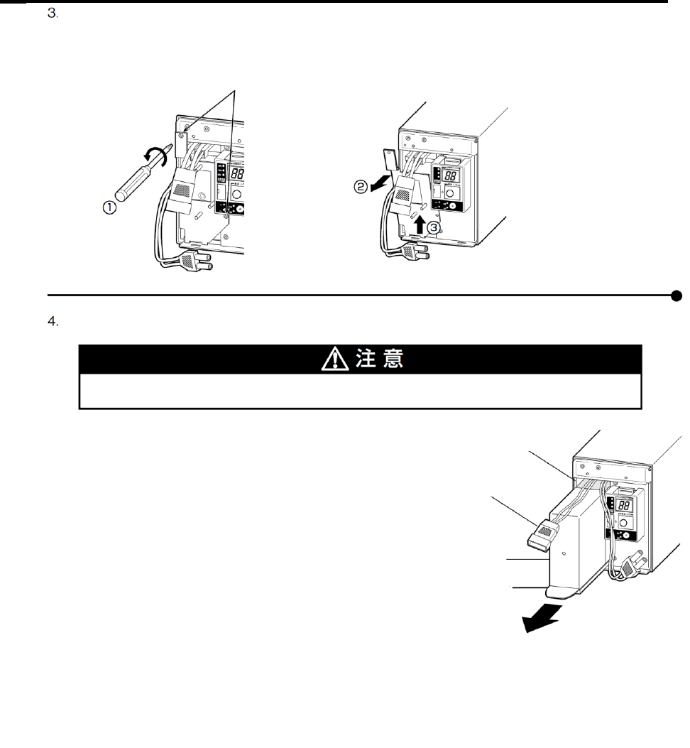 将金属盖向面前拉出的同时②、向上提进行取出。③