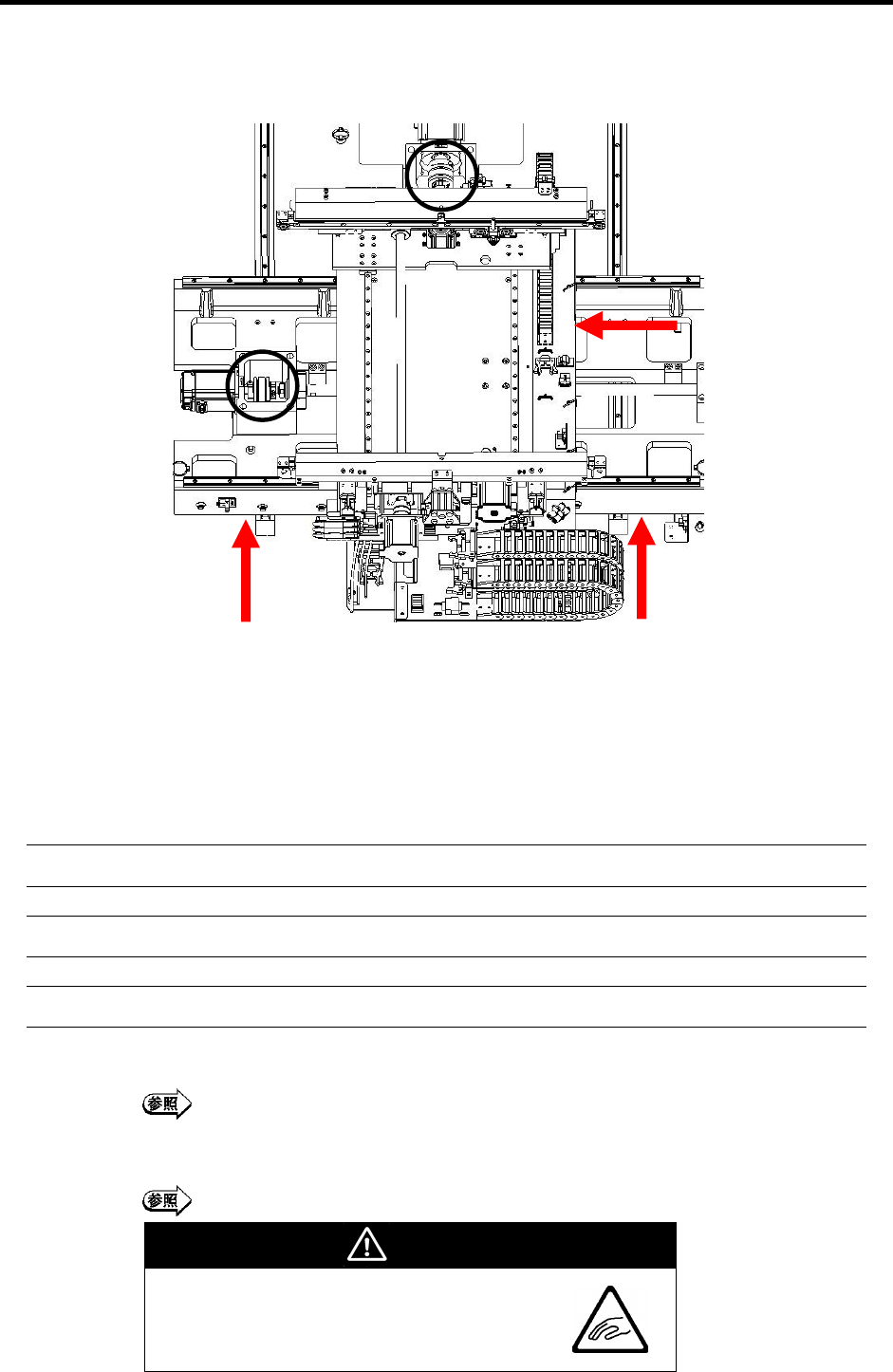 需要定期给位于正面门内部的 XY、W(传送带)轴驱动系统的滚珠丝杆、LM 导轨上油。请按以下要领