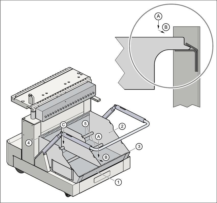 (1) BE-Wechseltisch, fahrbar (2) Gurtabfallbehälter, herausziehbar