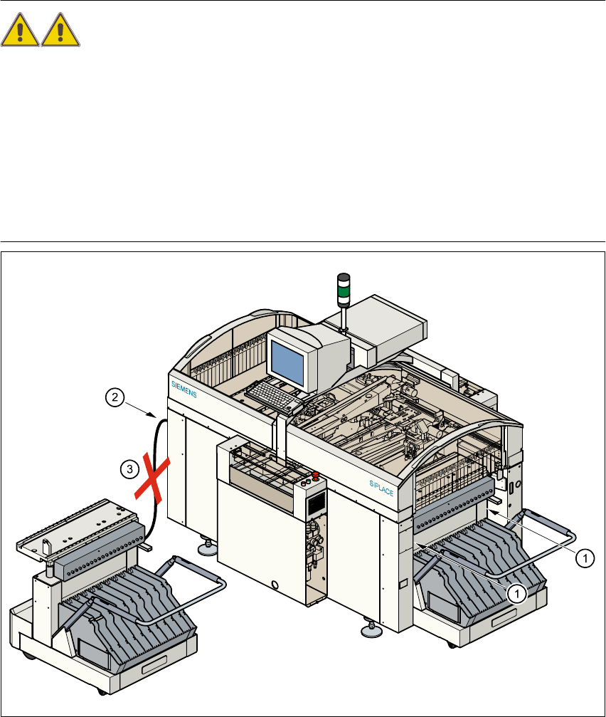 Betriebsanleitung SIPLACE S-25 HM 3 Was ist zu tun ... Softwareversion SR.502.xx A usgabe 01/2001 DE 3.8 BE-Wechselt isch, fahrbar 111 3.8 BE-Wechseltisch, fahrbar 3.8.1 Sicherheit shinweise zum An- und Abdocken des fahr…
