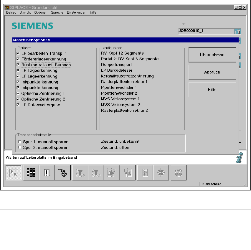 Betriebsanleitung SIPLACE S-25 HM 5 Stationserweiterungen Softwareversion SR.502.xx Ausgabe 01/2001 DE 5.2 Bauelementebarcode 161 5.2.2 Hinweise zur Bedienung – Der Barco deleser muss angesc hlossen sein . – Der Barcode …