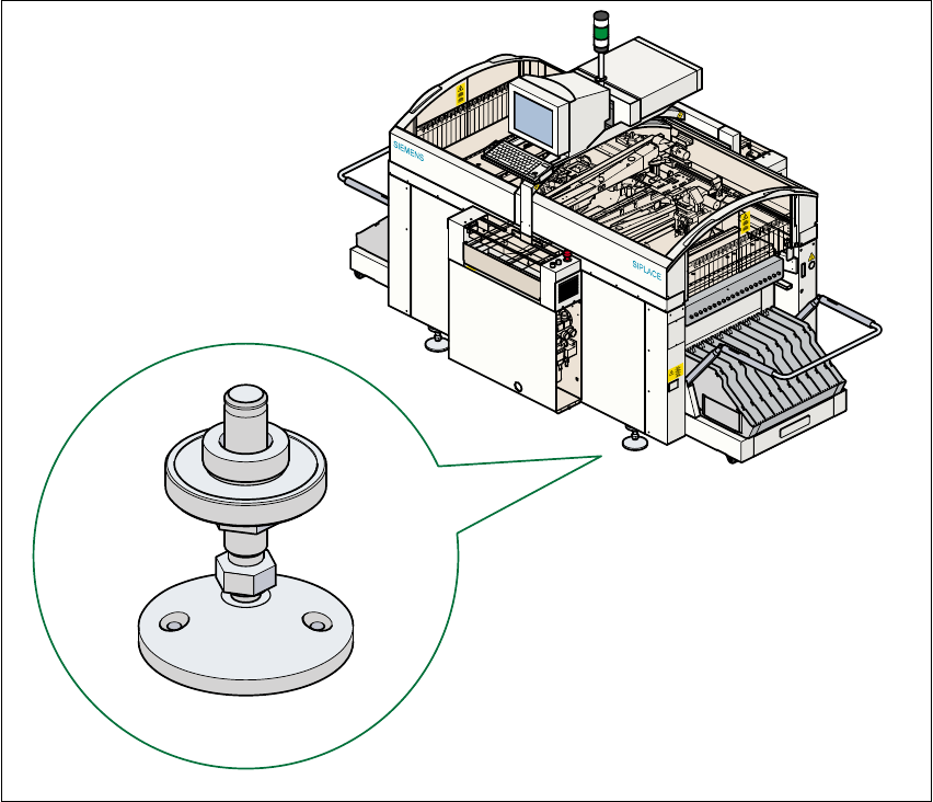In erdbebengefährdeten Gebieten ist es notwendig, den Bestückautomaten gegen Verrutschen