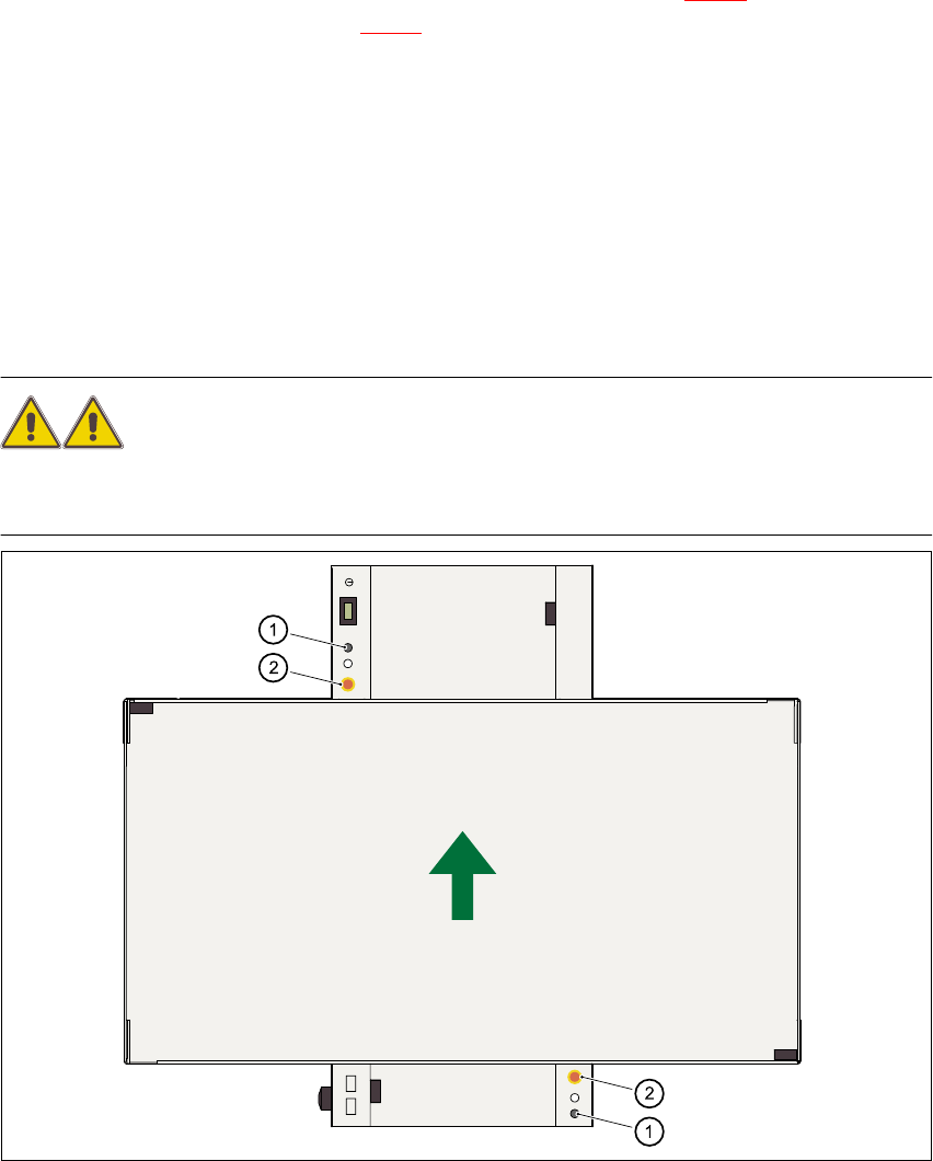 Wird eine der Schutzhauben oder eine Abdeckung am Ein- bzw. Ausgabetransport geöffnet,