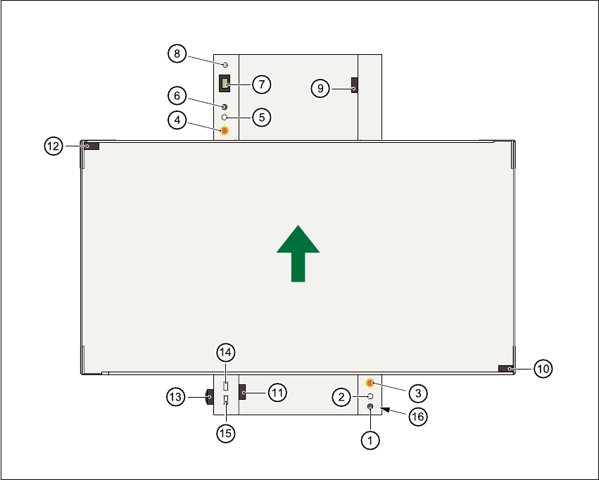 (8) Schlüsselschalter geöffnet:Stellung 0 für Normalbetrieb