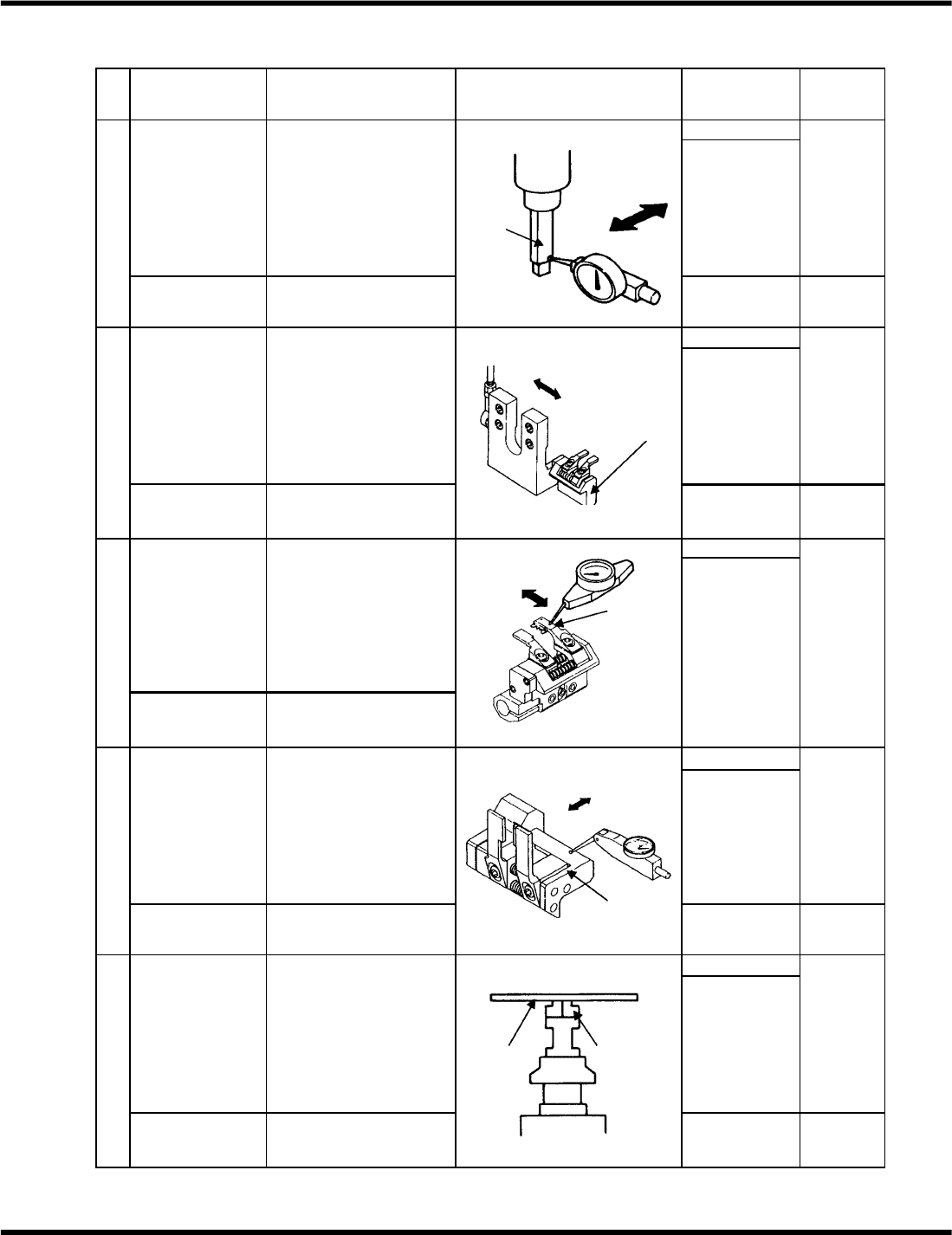 rh5 服务手册 6.1检查维修精 度 da3s ec − 89 − 010 − a0 6.1 − 2 4 不 。 检查物品 说明 插图 标准 测量 值 15 砧摆动精度(X 方向 插入) 待测210° 通过移动铁 砧来测量铁砧 的 摆动精度 相对于XY表, 在X方向测量 灰尘罩的一 侧50毫米。 在X方向 拾取测试 毫米 0至0.04毫米 博尔特 M5x3 M6x4 M8x4 白色标记检 查 好的 16 砧摆动精度(Y 方向 插入) …