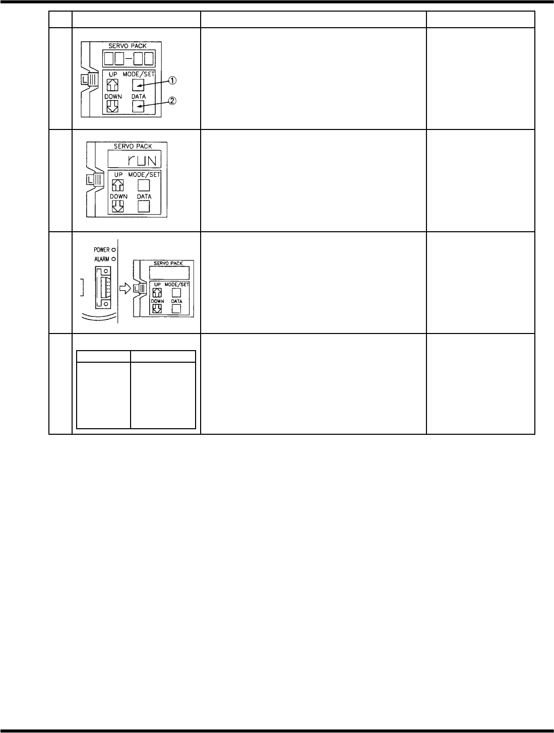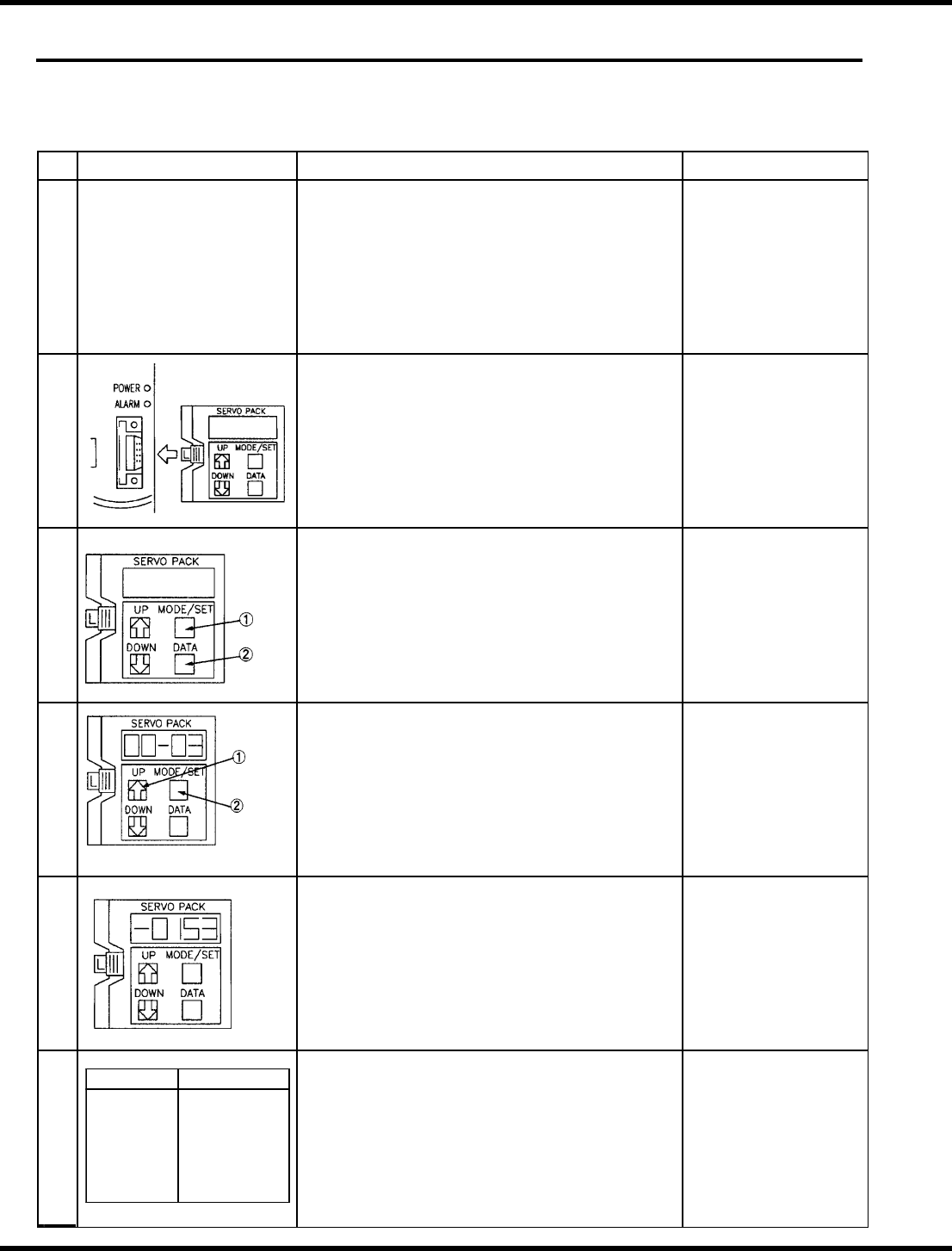 rh5 服务手册 7.3数字操作员 da3s ec − 84 − 310 − a0 7.3 − 2 2 显示 程序 备注 7 按模式/设置键将显示更改为Cn − 03,然后按下三次 DOWN键将显示更改为00 − 00。 8 按DATA键将显示更改为Cn − 00,然后按模式/设置更改为 “运行”。 9 从驱动器上拆下数字操作员,关闭机器一次电源。 10 [N C轴JOG检查 ] 打开电源,按“F1”(NCJOG CHECK),以确保每…