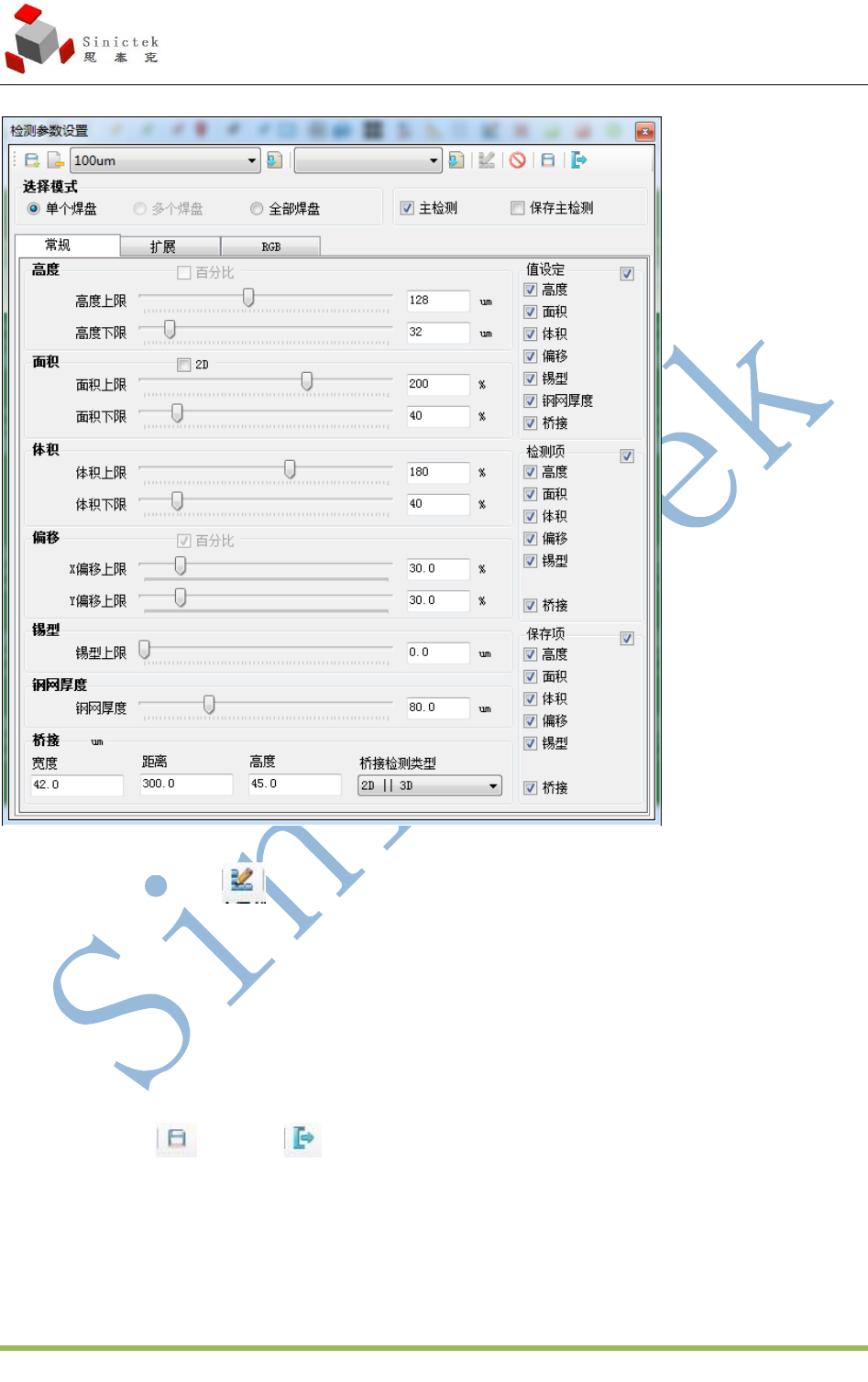 值设定:只是设定某个或多个项目的参数,并不决定设定的项目检测还是不检测。