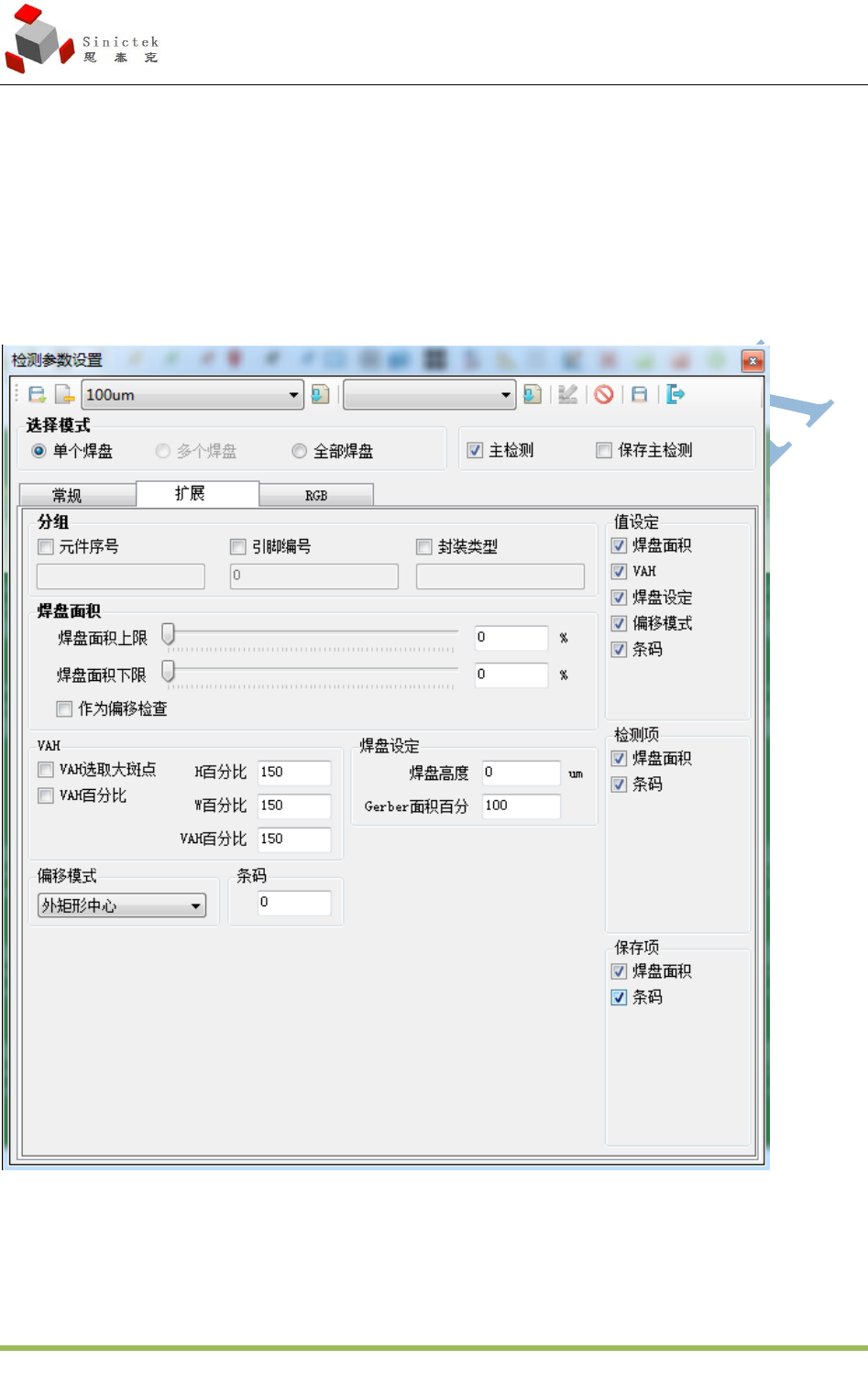 在此界面可以设定焊盘面积的上下限,焊盘高度的补偿值,偏移模式的计算方式,以及扫
