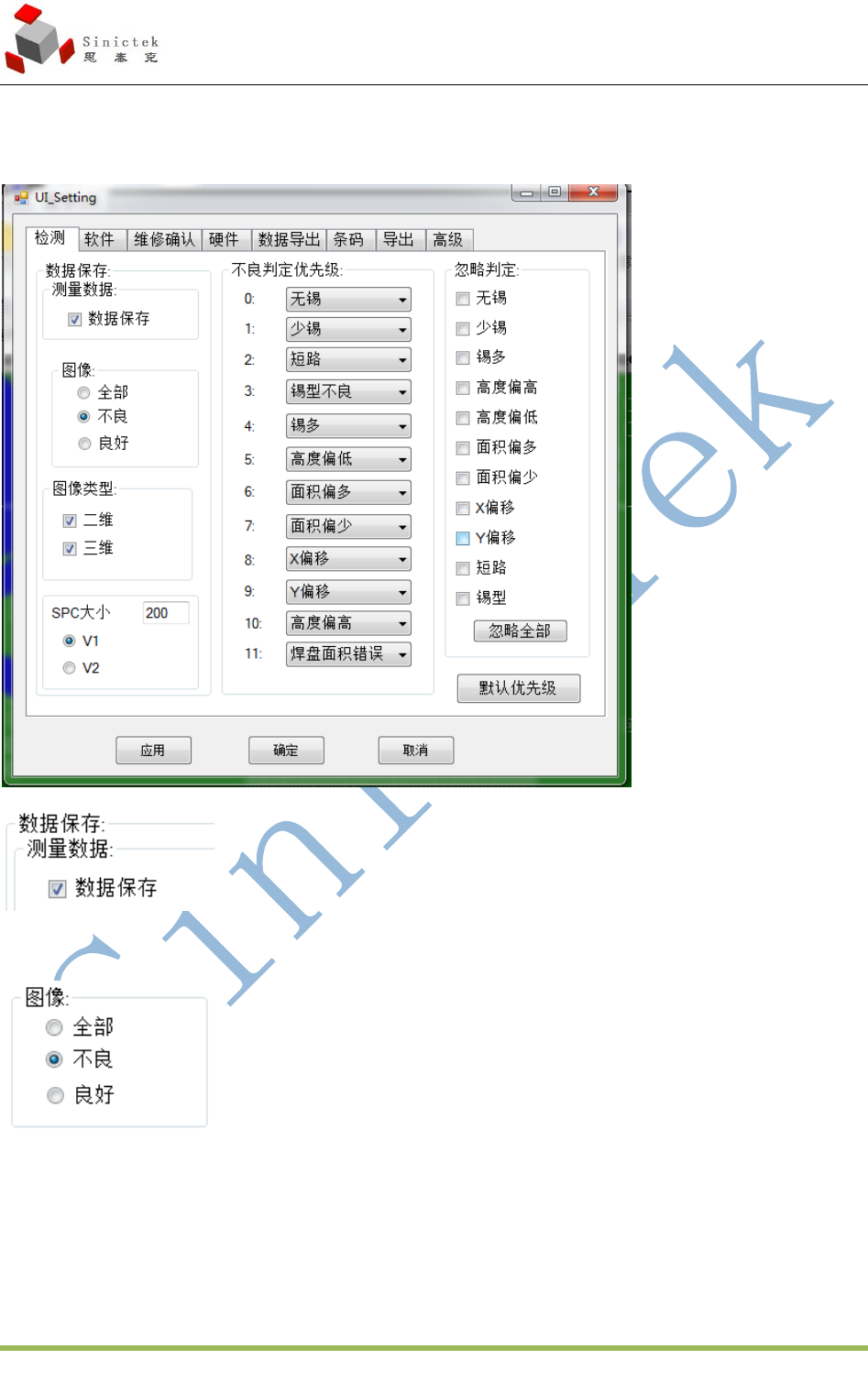 图像:选择全部,保存所有图像;选择不良,只保存测试不良的图像;选择良好,只保存