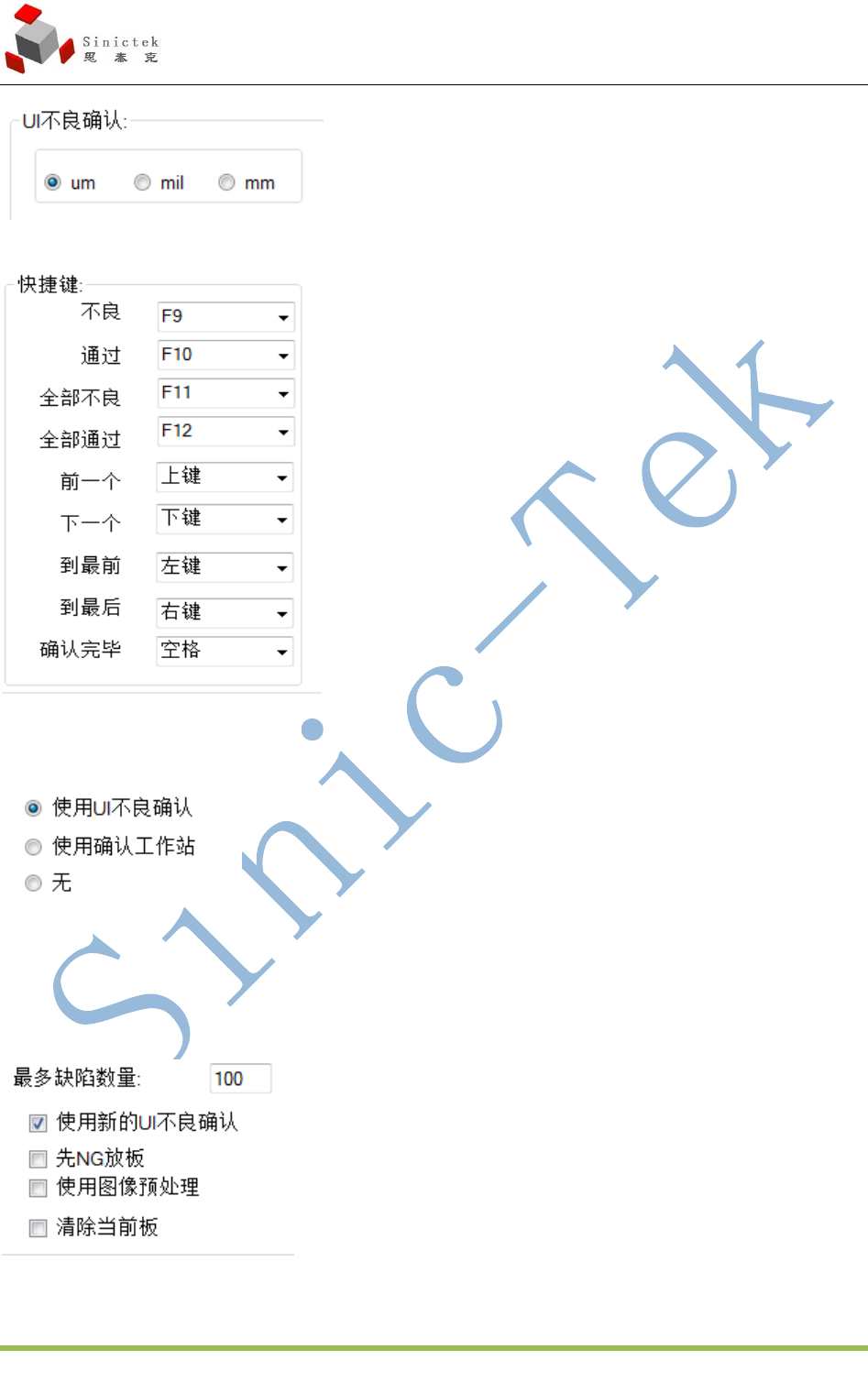 使用新的 UI 不良确认:打勾显示新的 UI 不良界面,不打勾显示旧版本 UI 不良界面。