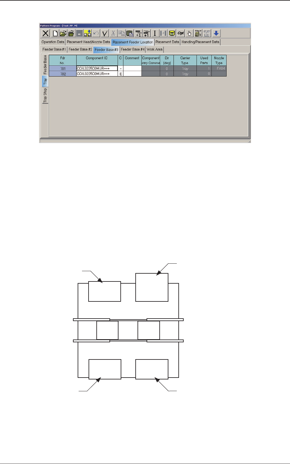 3-6 AJK-ML T-ID (C02) Tray Data Fig. C4-1 "T ray" Edit Window (C02_01) Fdr No. Shown are the feeder Nos. in the placement feeder location data. When the multi-layer tray feeder is connected, the feeder Nos. (Fd…