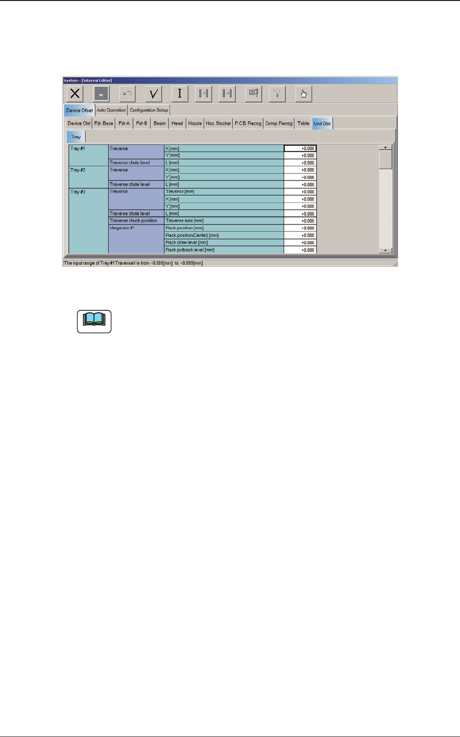 3-13 AJK-ML T-ID (1) T raverse These offset data is used to adjust the position where a pallet is drawn out by the traverse shafts. T raverse [mm] When a pallet is drawn out, the traverse shafts move as far as the speci…