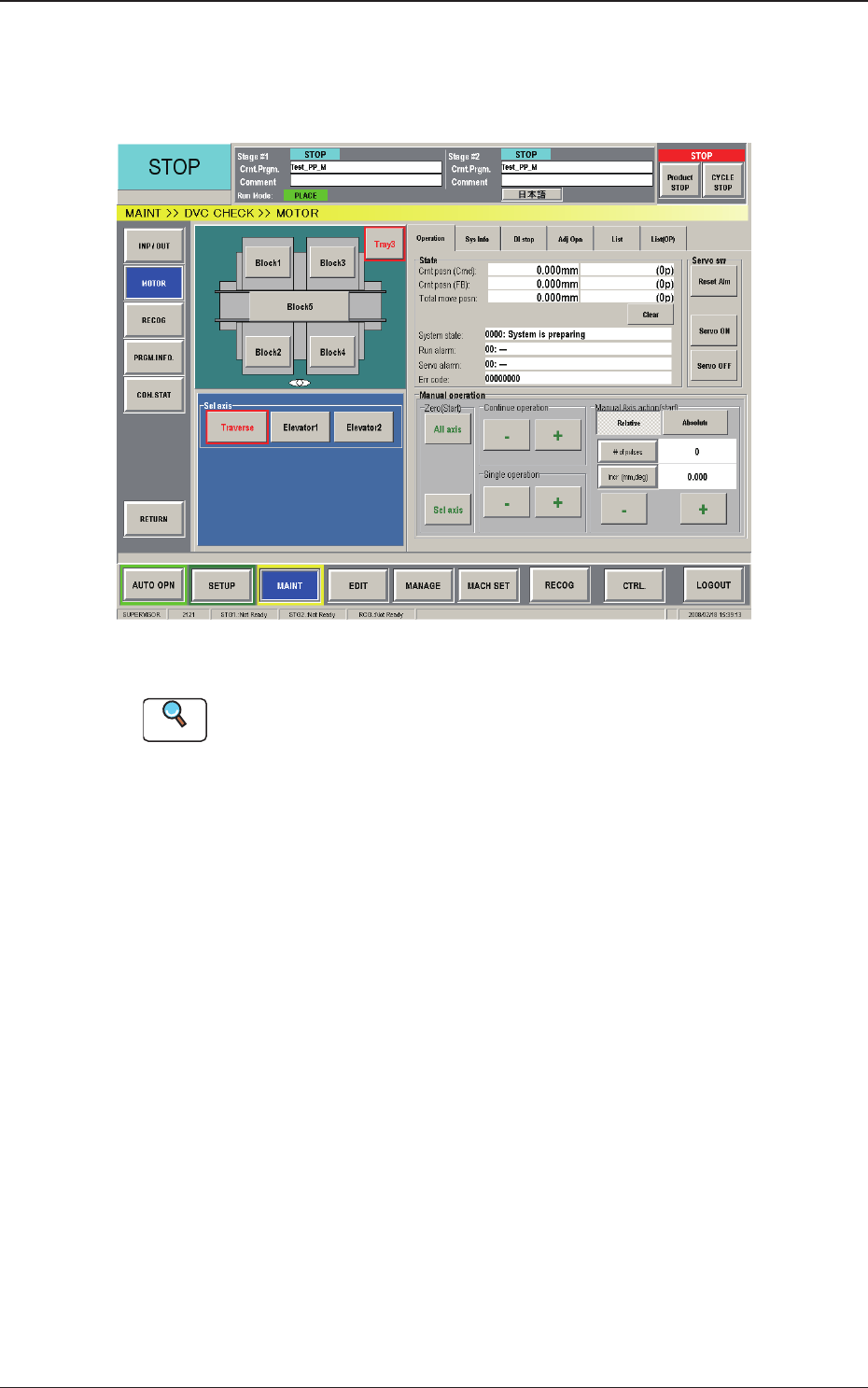 This window enables the operator to view the manual operation (manual axis