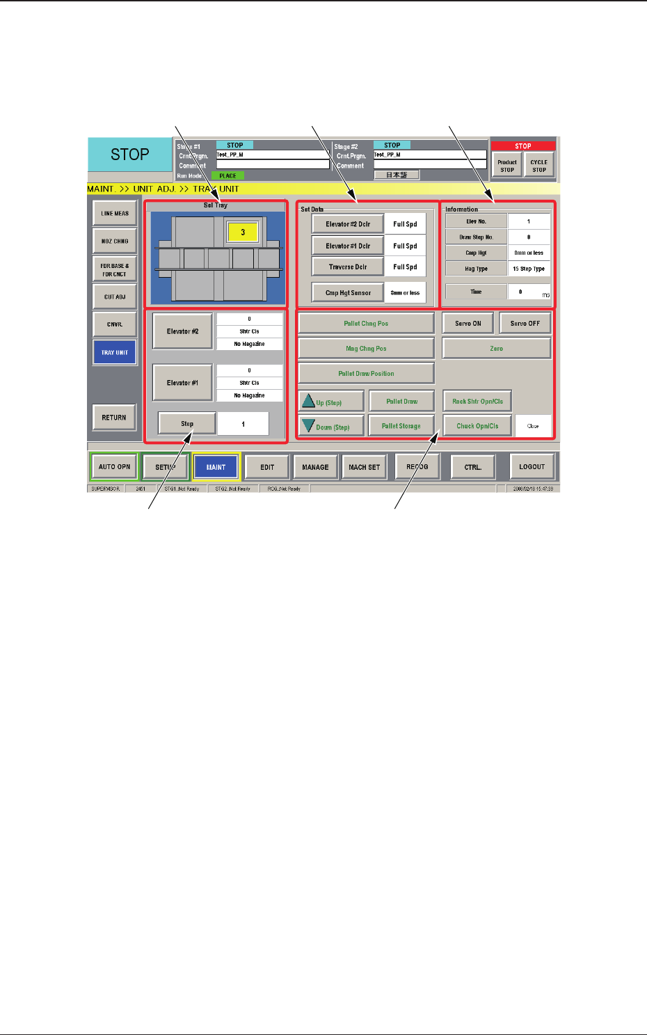 This window enables the operator to manually operate the multi-layer tray