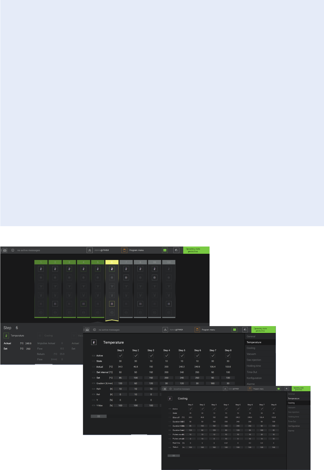 meaning that short cycle times are also no problem. Sensor components determine and verify the temperatures recorded on the