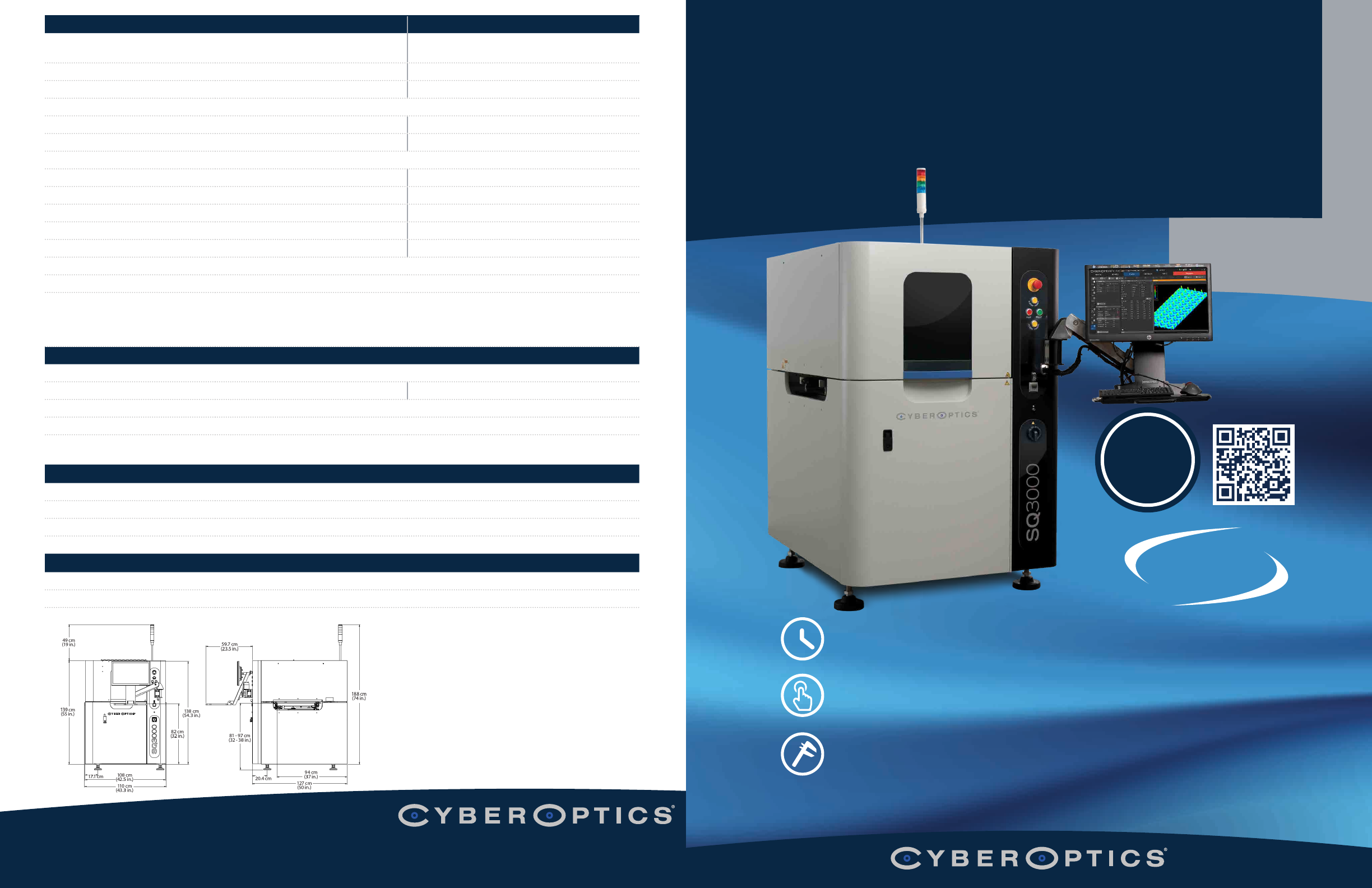 SQ3000 ™ 3D CMM Contact C yberOptics today for mor e information +1 800.366.9131 or +1 763.542.5000 | CSsales@cyberoptics.com | www.cyberoptics.c om Copyright © 2018. C yberOptics Corporation. All rights reserved. Speci…