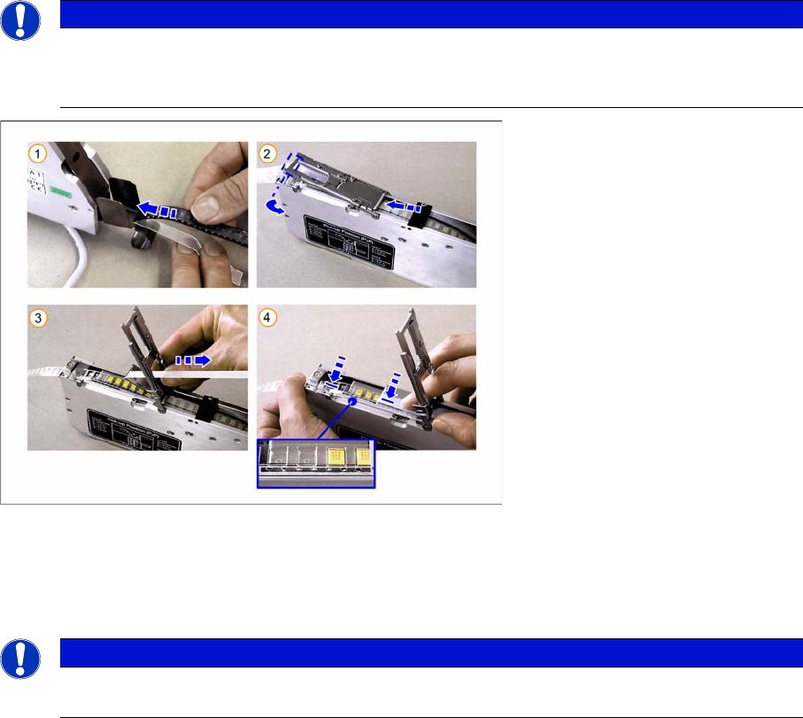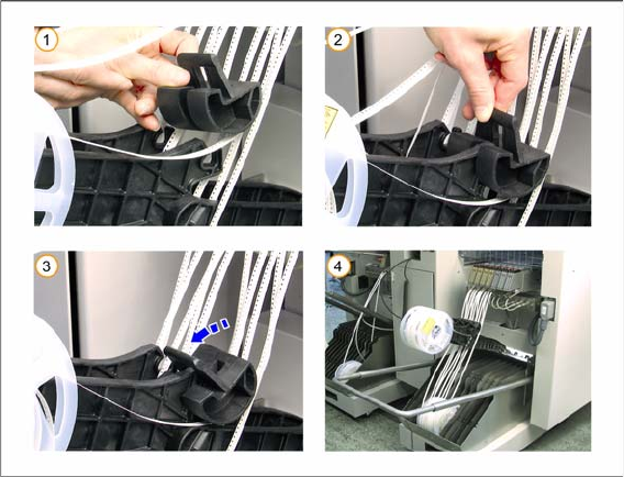 Before you insert the tape, remove any loose components from the feeder. Pay particular