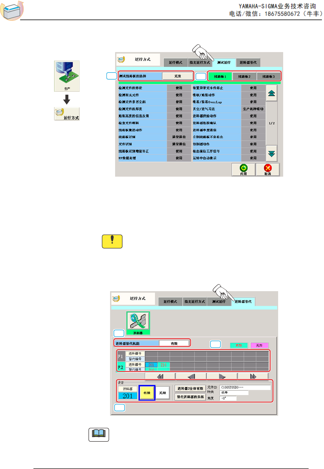 若弄错测试运行方法的选择,会导致发生吸嘴的元件吸取异常、元件