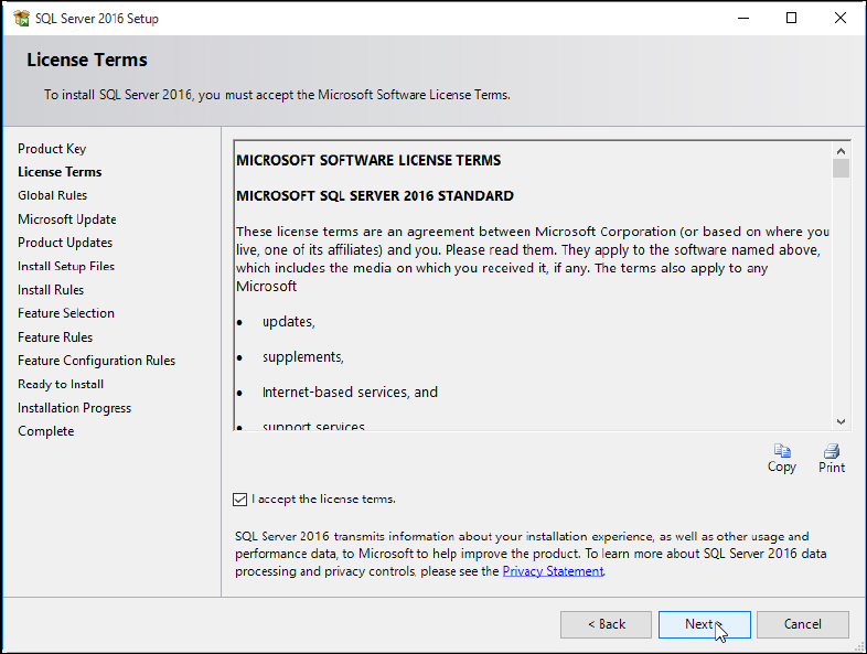 Figure 4-5: SQL Server License Terms window