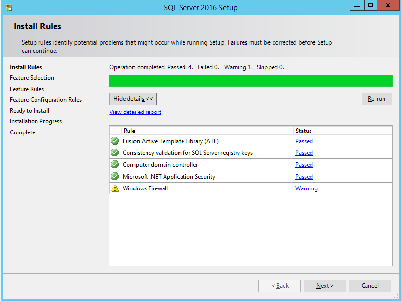 Figure 4-8: SQL setup checking Install Rules