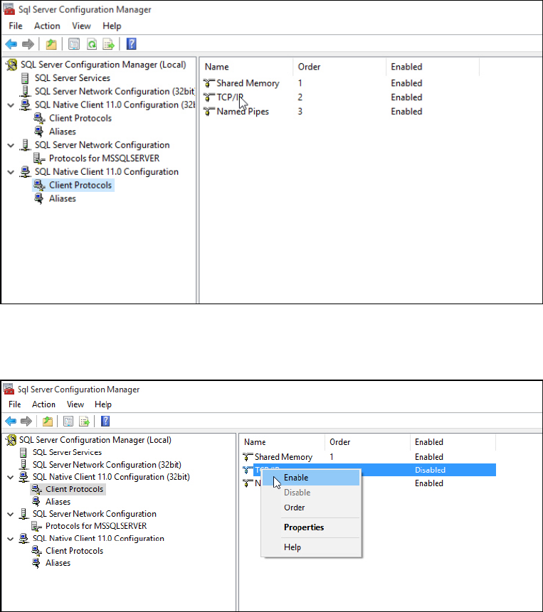 ► Ensure that TCP/IP is Enabled. If you need to change the setting to Enabled, right- click the