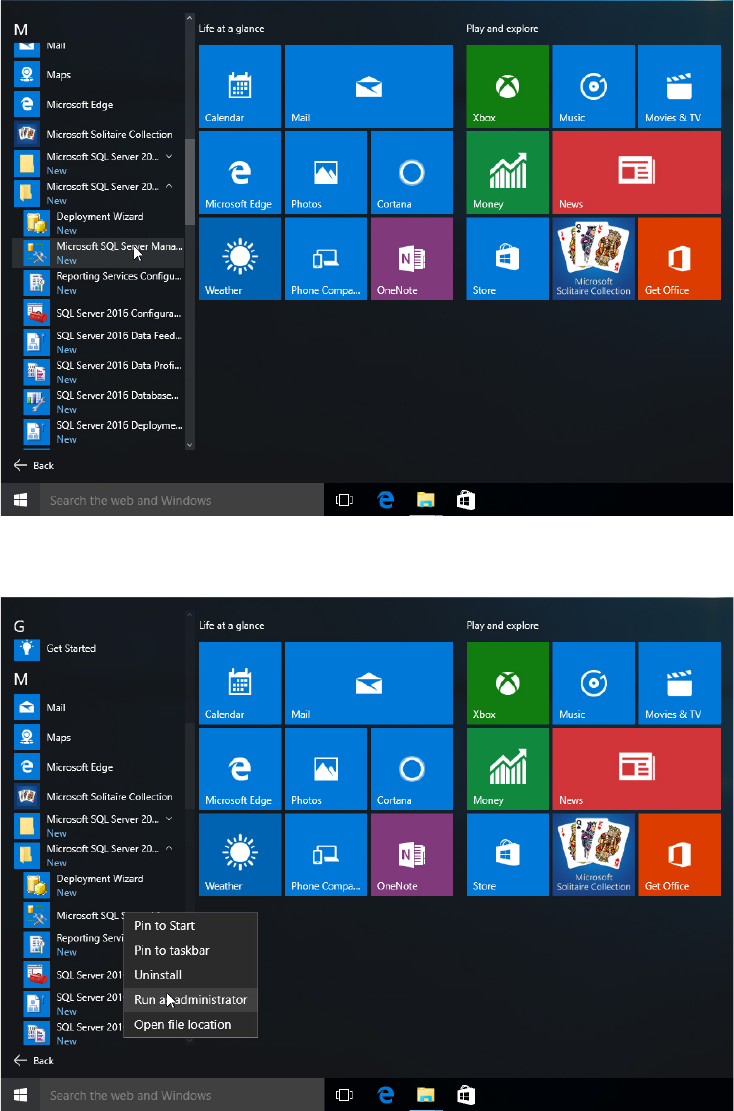 ► Right- click the Microsoft SQL Server 2016 Management Studio.