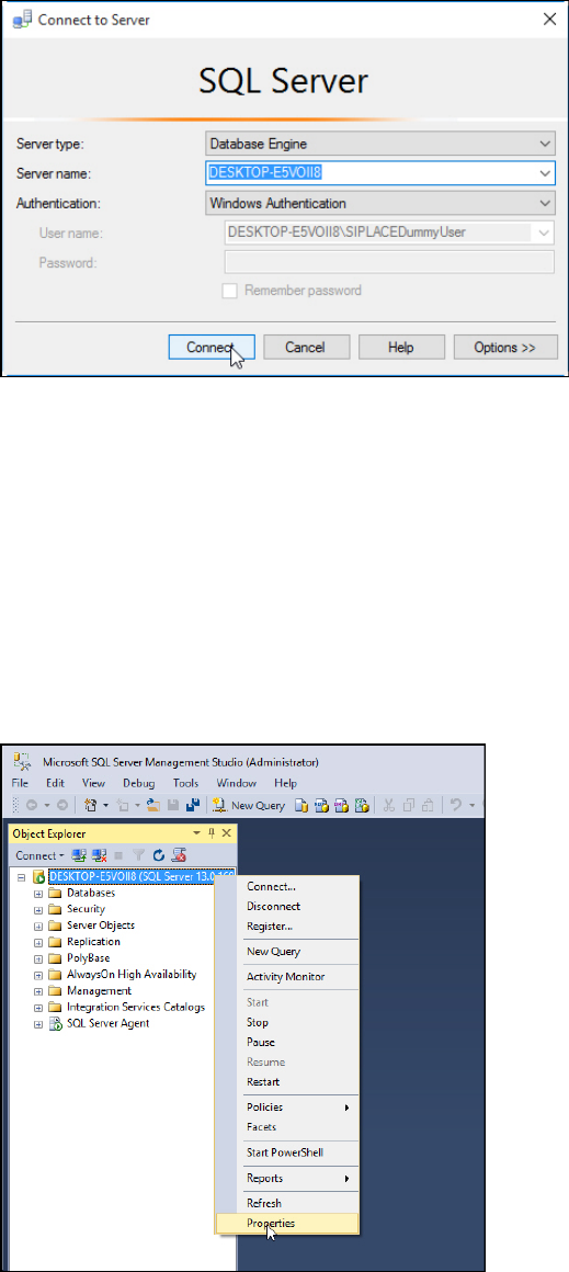 ► Ensure that the correct SQL instance is entered as Server name:.