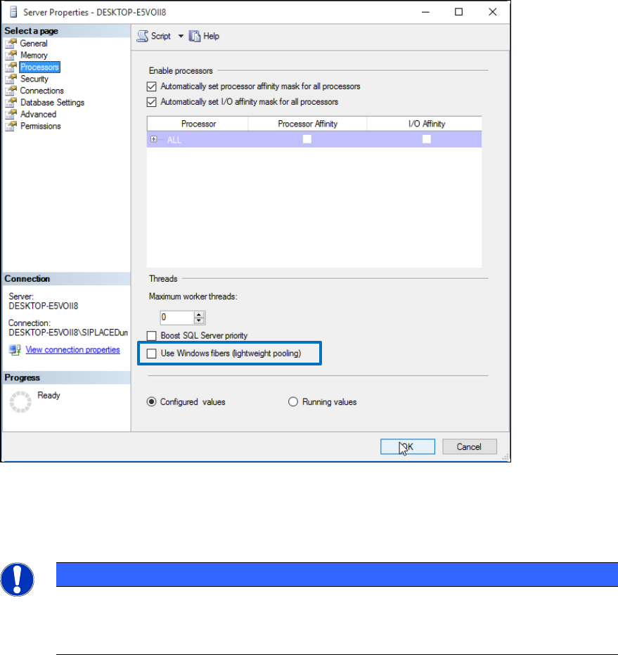 ► Ensure that the Use Windows fibers (lightweight pooling) check box is NOT selected.
