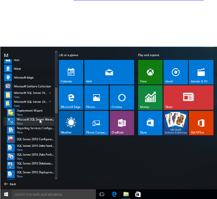 Figure 5-11: Starting SQL Server 2016 Management Studio