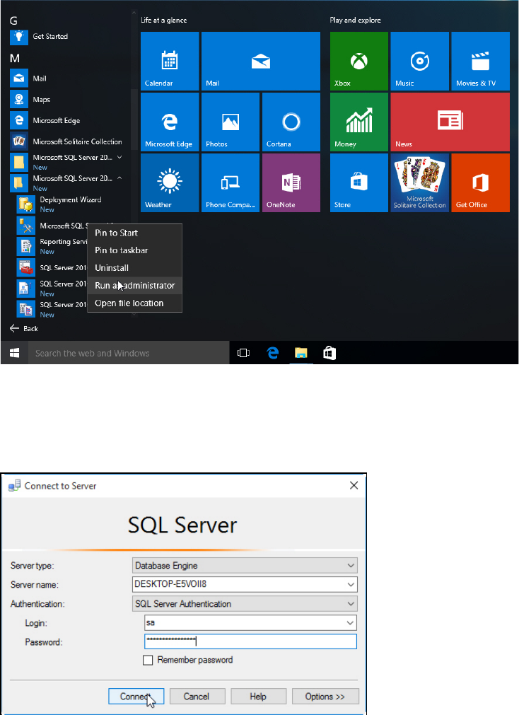 SQL Server 2016 / I nstallation Manual 12/2016 Edition 41 ► Right - click the Microsoft SQL Server 2016 Managem ent Studio . Figure 5-17: Starting SQL Server 2016 Management Studio ► Select Run as administrator . ► Accep…