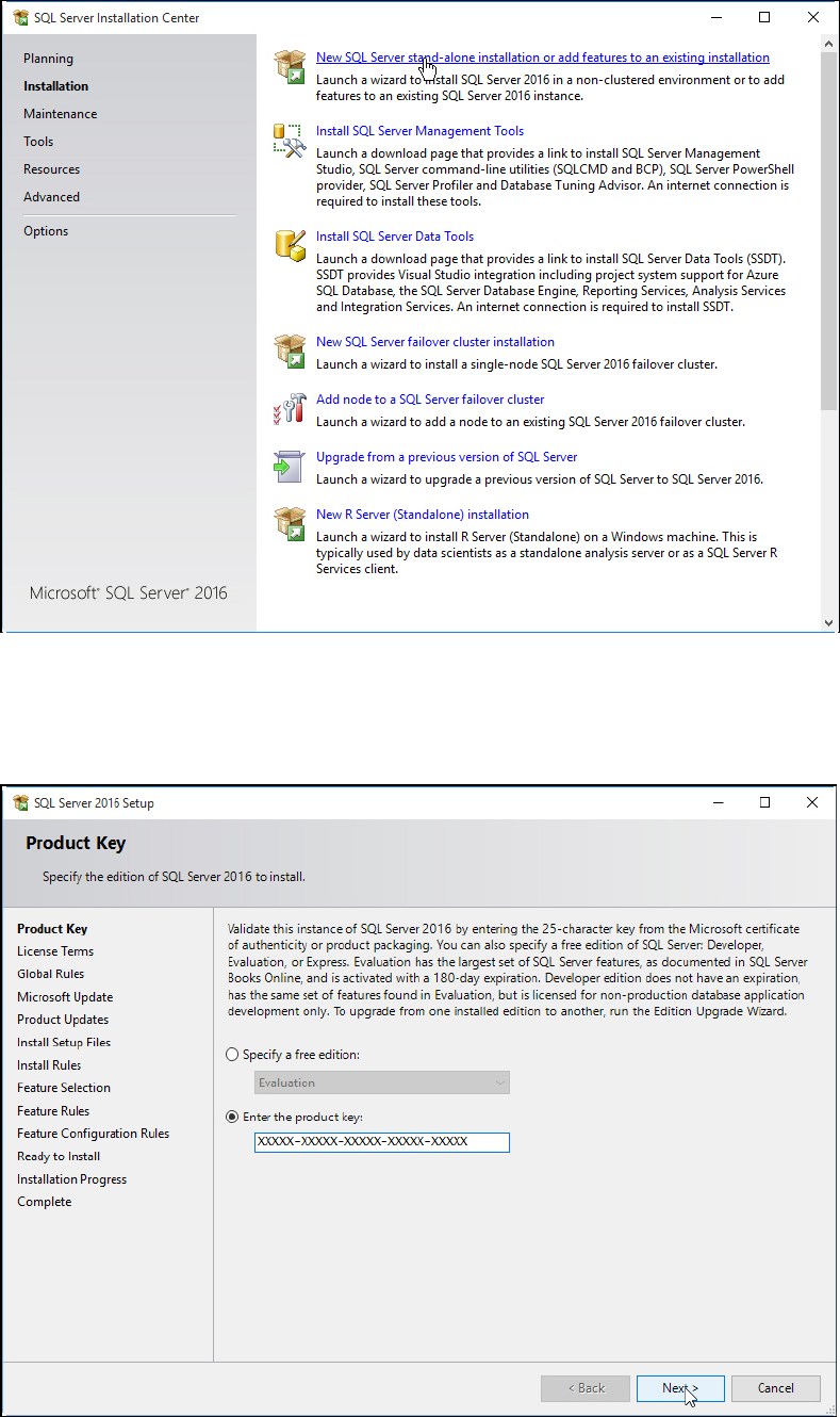 SQL Server 2016 / I nstallation Manual 12/2016 Edition 9 4.2 Installing S QL Server 201 6 Standard Edition Follow the instructi ons below for the manual inst allation of SQL Server 201 6 St andard Edition . ► Ensure that…
