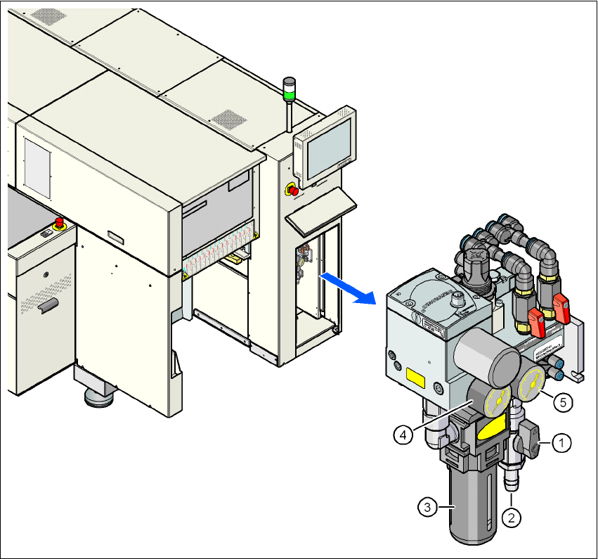 (2) Разъем для подачи сжатого воздуха, заданное значение: 0,55 - 1,0 MПа (5,5 - 10 бар)