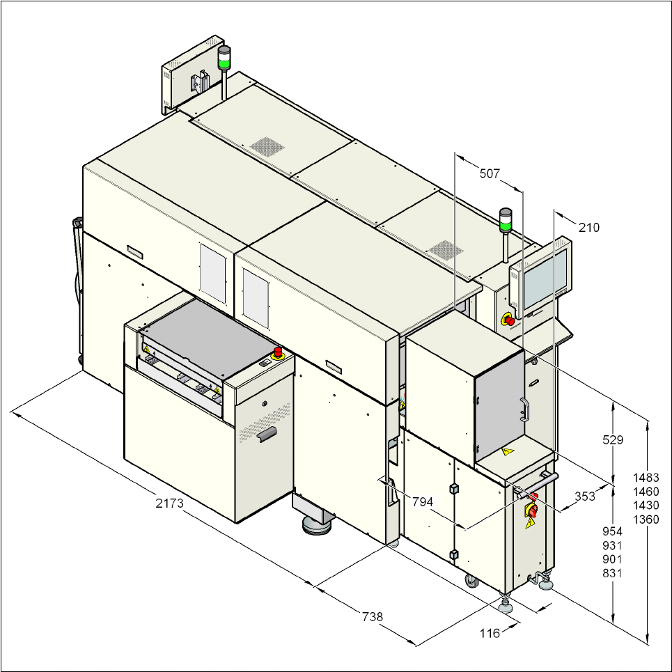 Руководство по эксплуатации SIPLACE D1i/D2i 6 Расширения станции ПО - версия SR.605.03 SP2 и выше 6.2 Мех анизм смены ячеистых магазинов ( МСЯМ ) Издание 10/2012 RU 278 6.2.5 Ра змер ы а втомат а D1i с МСЯМ 6 P ис . 6.2 …
