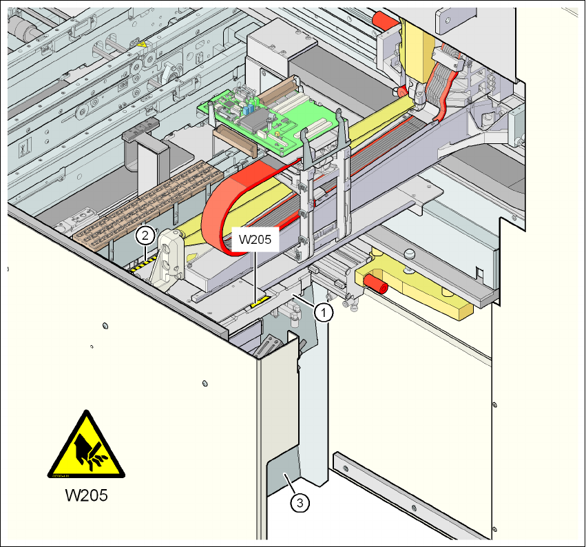2.2.3.1 Предупредительная наклейка W205 на поперечной траверсе резака