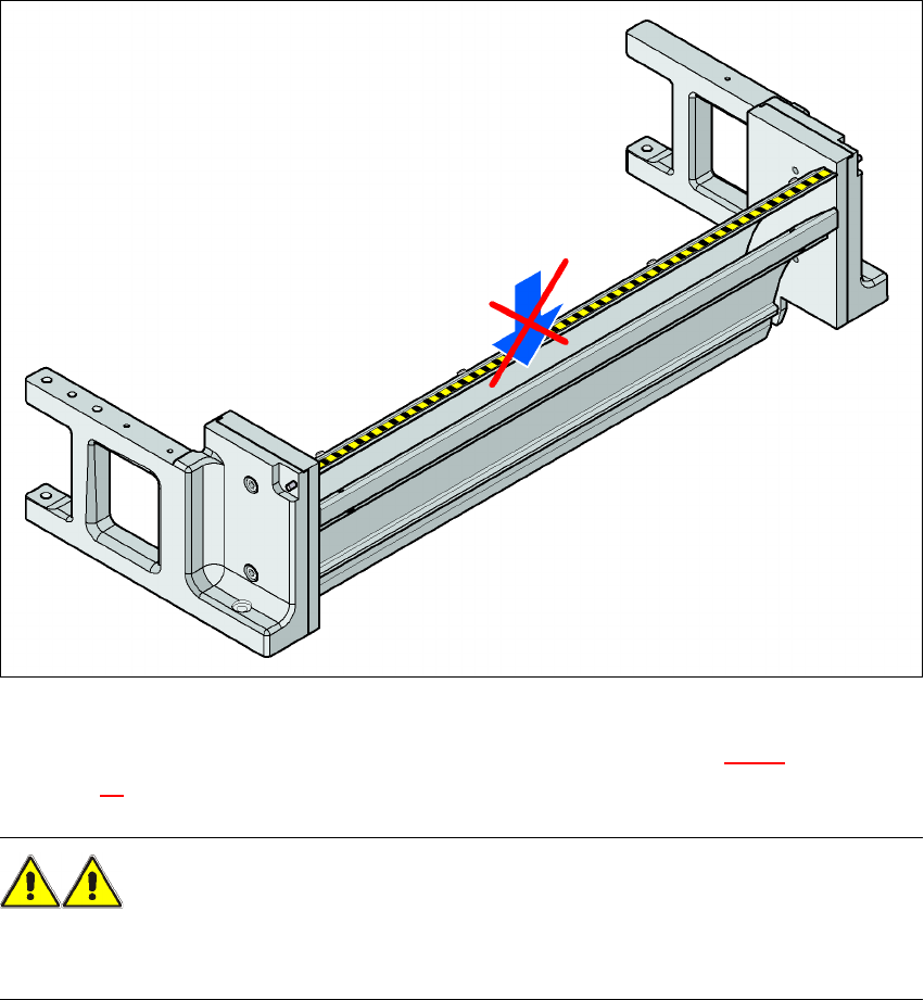 Pис. 2.2 - 4 Предупредительная наклейка W205 на поперечной траверсе резака для ленты