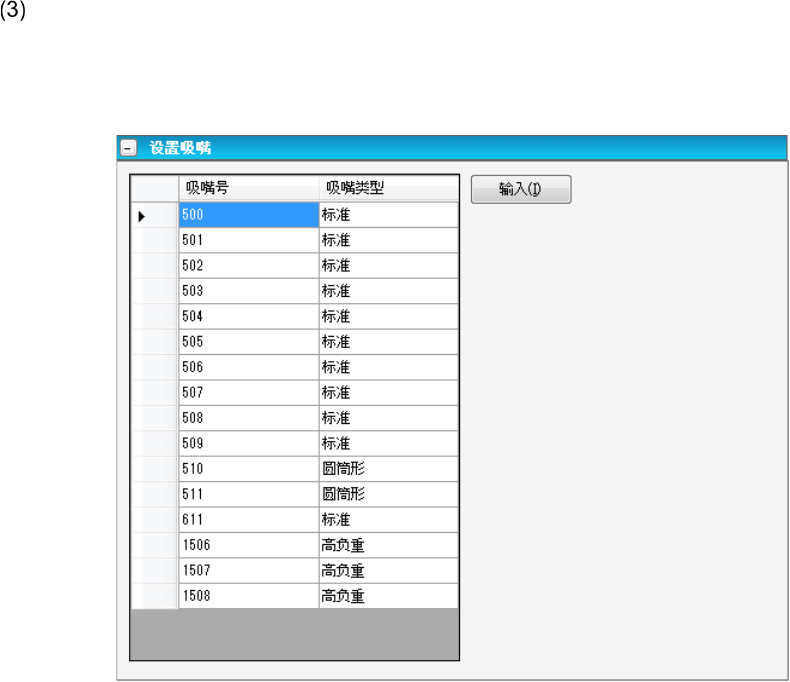 ※ 吸嘴编号 7510 和 7511 已导入了默认值。